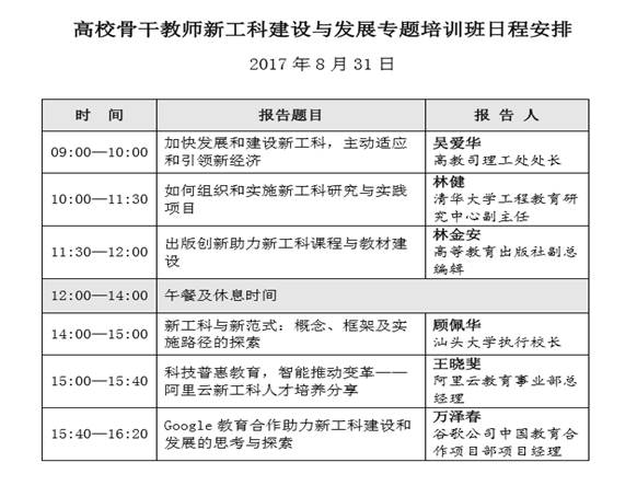 附件:高校骨干教师新工科建设与发展专题培训班日程安排