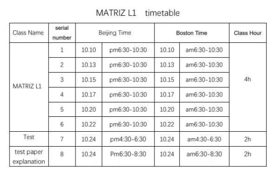 上课方式:采用“腾讯会议”进行线上授课,初步暂定上课时间如下:(与外方沟通后,可能会微调)
