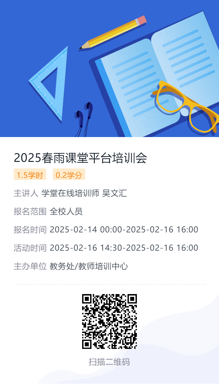 为推动信息技术与教育教学深度融合,提升广大教师的线上教学能力,根据学校2025年春季学期教师培训工作安排,拟于近日举办超星学习通和雨课堂平台培训会,现将有关事宜通知如下: