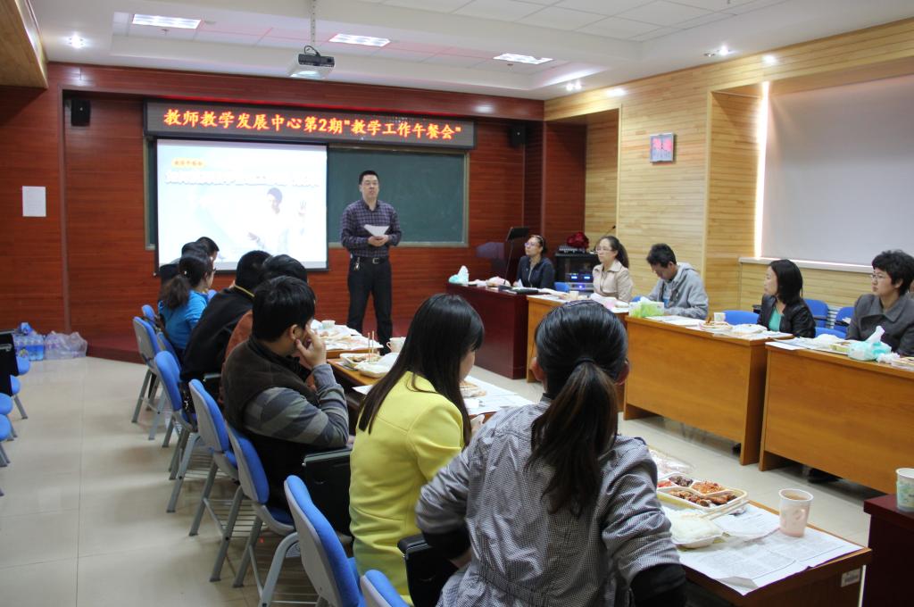 首先,教务处副处长、教师教学发展中心主任李仕华教授对举办本次午餐会的目的做了说明。他指出,作为学校教学工作二级管理的关键部门,各学院教务科的工作效率及效果直接影响到学院乃至学校教学工作的高效有序开展,午餐会是教务管理人员交流的新形式、新平台,希望大家借助这个平台把工作中好经验、好做法以及遇到的困难与困惑提出来,在共享教学管理经验和心得的同时,集思广益,积极探讨解决问题的具体办法或思路。