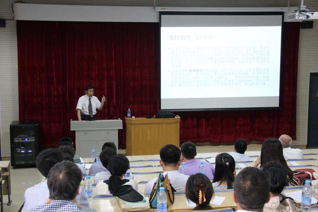 在7月1日和7月5日的两场学生讲座上,温熙宇教授向我校学生系统介绍了美国大学的生活、初到美国应注意的风俗习惯,如何适应美国的学习生活、如何求职等一系列问题。他认为,美国大学生不仅注重知识学习,也特别注意能力的训练和自我素质的提高。美国大学的学习任务非常重,毕业要求也非常严格,学生学习也非常刻苦。在7月3日的教师讲座上,温熙宇教授结合自己多年在美国生活工作的经历,向我校教师介绍了美国各阶段教育,美国的大学职员类别及分工,以及美国的教学管理。此外,在三场讲座的现场互动环节中,温熙宇教授还就师生感兴趣的问题给予了一一解答。
