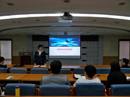 窦燕老师从信息化对人们工作和生活的影响谈起,结合信息化教学的特点,从教学策略、讲授方式、学习内容、作业方式、教师角色、分组方式和评估方式等七个方面分析了传统教学和信息化教学设计的区别,并向与会人员介绍了PPT、格式工厂、zoomlt、mindmanger、xmind、学堂在线、mooc等常用的教学平台和教学辅助工具的应用,她从信息化教学、信息化教学设计、辅助信息化教学的常用工具、信息化时代的教师等五个方面逐步展开,向与会人员传递了信息技术有效促进教学的观点。