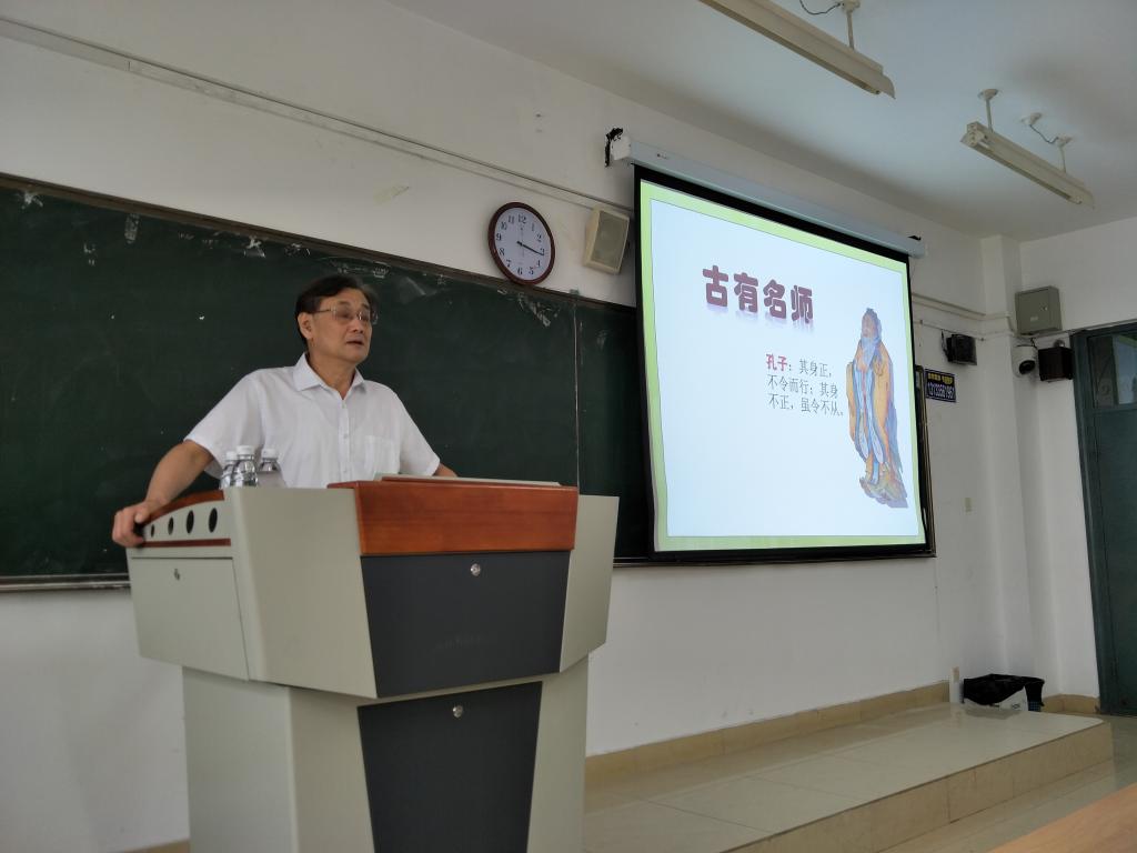 魏黎波教授从孔夫子儒学思想三纲八目中的“德”字谈起,他给青年教师讲述了他职业生涯中对自己触动颇深的几件事:从他初上讲台尚在职业犹豫期时被一位每堂课都认真听讲的小胖丫深深触动而令他放弃更好的选择并逐渐深深爱上教师这个职业,谈到他克服种种困难毅然坚持从事教学改革,为写一本收录他多年教改成果的教材花费20年时间而他在此过程中也顺带收获省级教学成果奖一等奖,后又被破格提拔为教授等亲身经历,结合08年汶川地震中用身体护住四个学生自己却壮烈牺牲的中学老师谭千秋和为救学生双腿截肢的青年教师张丽莉的真实案例深入浅出的诠释了如何成为一名好老师,他借用教育家陶行知的一句名言,结合习近平总书记在北师大师生座谈会上的讲话内容总结一名好老师不仅要有坚定的理想信念、高尚的道德情操,还要有扎实的学识和一颗怀揣学生的仁爱之心。他告诫青年教师尽量不要因一些功利性的目的去做教学和科研,应该平衡好教学科研的关系,善于在教学中发现科研课题,用学生听得懂的语言和喜欢的方式跟他们交流,努力写学生能看得懂的书,并在此过程中不断累积成果为己所用。最后他用“学为人师,行为世范”与大家共勉。