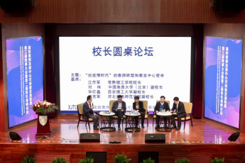 随后,由西交利物浦大学领导与教育前沿院的院长张晓军副教授主持,邀请常熟理工学院校长江作军教授、中国地质大学(北京)副校长刘伟副研究员、西安理工大学副校长华灯鑫教授、河北民族师范学院副校长李克军教授四位校长进行圆桌讨论,共同探讨和分享了“后疫情”时代教师应如何转型,教师发展中心如何支持教师转型。