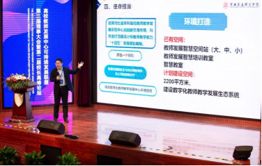 河北民族师范学院副校长李克军教授介绍了目前教师发展中心的四种形态,分享了所在学校如何从课程入手,通过点线面结合、理论与实践结合等实践活动支持教师转型。