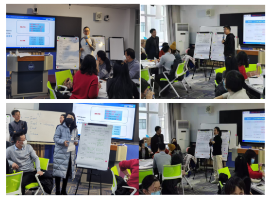 线下培训主要内容包括教学示范、教学目标撰写、教学内容设计、教学方法设计、教学活动设计、教学精进、教学授课展示之人气争霸、教学展示之技能争霸、结业等环节。学员在培训师的引导下,以小组为单位,通过“个人演练、团队观摩、集体研讨与个人反思相结合”的方式,通过小组任务,逐步熟悉了教学的基本环节,掌握了教学的基本技能。