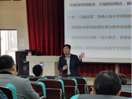 姚建涛老师一直从事《机电一体化系统设计》(国家精品资源共享课)、《微机原理与应用》(河北省精品课程)等专业主干课教学,他围绕金课建设的大背景,结合自己对金课建设的探索与实践,深入浅出的向与会教师分享了他在金课建设过程中的思考与体会。他认为:水课之水在于“混”,金课之金在于“实”。金课建设的整体思想是要“脱三水、捞三金”,课程设置要推陈出新,紧跟学术需求、引领行业前沿;课程内容之金在于研,要研习教学方法、教研一体;课程考核要避免形而不实,单一重复,应重点进行能力提升考核。姚老师以他讲授的国家级精品资源共享课程《机电一体化系统设计》金课建设实践为例,详细阐述了金课建设的具体思路和整体举措。最后他提出:超级金课建设课程是“根”,项目是“金”,金课之本在于“实”,金课之解在于“勤”。姚老师的这场报告既丰富了与会教师的知识也开阔了大家的视野。