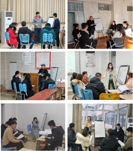 11日上午,简短的开班仪式和破冰活动结束后,第八期“燕知行”教学技能培训活动正式拉开帷幕。本期培训活动基于BOPPPS教学模式,由“ISW和Boppps介绍”“微格课程演练”“PPT教学课件制作与板书设计”“如何开展参与式教学”等主题课组成。在9位培训师的带领下,学员们在小组中彼此呈现微格教学演练。培训师重点对学员进行ISW技能的模组训练,包括导入、学习目标、前测、参与式学习、后测、总结等六个模块。同时,学员们在培训师的引导下进行反思性回馈。在此过程中,学员既是教学者、又是倾听者、同时还是反馈者,在实际演练中不断切换角色,熟悉教学技巧、反思教学行为,在同组互助、轻松愉快的环境下挑战自我。在热烈的讨论和分组演练中,不同学科背景的老师们各抒己见、头脑风暴、互相取长补短,从教师与学生的不同视角切实体验了BOPPPS教学模型的优势和成效。
