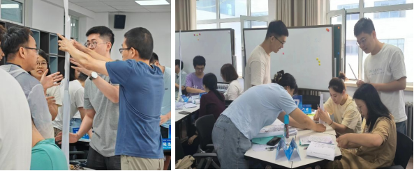 11日上午,简短的开班仪式和破冰活动结束后,第九期“燕知行”教学技能培训活动正式拉开帷幕。本期培训活动基于BOPPPS教学模式,由“ISW和Boppps介绍”“微格演练技巧与示范”“课程思政案例展示与点评” “如何开展参与式教学”“如何进行教学评价”以及“PPT教学课件制作与板书设计”等主题课组成。在9位培训师的带领下,学员们在小组中彼此呈现微格教学演练。培训师重点对学员进行ISW技能的模组训练,包括导入、学习目标、前测、参与式学习、后测、总结等六个模块。同时,学员们在培训师的引导下进行反思性回馈。在此过程中,学员既是教学者、又是倾听者、同时还是反馈者,在实际演练中不断切换角色,熟悉教学技巧、反思教学行为,在同组互助、轻松愉快的环境下挑战自我。在热烈的讨论和分组演练中,不同学科背景的老师们各抒己见、头脑风暴、互相取长补短,从教师与学生的不同视角切实体验了BOPPPS教学模型的优势和成效。