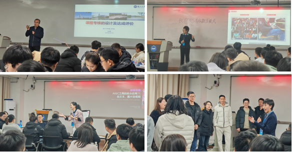 培训内容主要分为两部分:主题课程和微格演练。主题课程覆盖了“ISW 与 BOPPPS 介绍”、“微格演练技巧与示范”、“课程思政案例展示与点评”、“如何开展参与式教学”、“如何进行教学评价”以及“板书”等内容。微格演练基于BOPPPS教学模式,由9位引导员带领各组参训教师进行迷你教学演练,参训教师根据事前完成的教学设计进行课堂教学,其他参训教师在担任学生角色的同时要在小组内对授课参训教师进行书面及口头反馈,并在最后一次反馈中给予综合评价。参训教师们在微格演练环节打破了各自专业课领域的界限,通过教学者、学习者、反馈者三个角色的不断切换,切身体验了如何将BOPPPS模块有效转化为生动有效的教学实践。培训期间还精心组织了丰富多样的破冰活动,快速增进了不同学科教师彼此之间的了解,为参训教师营造了轻松愉快的学习环境。