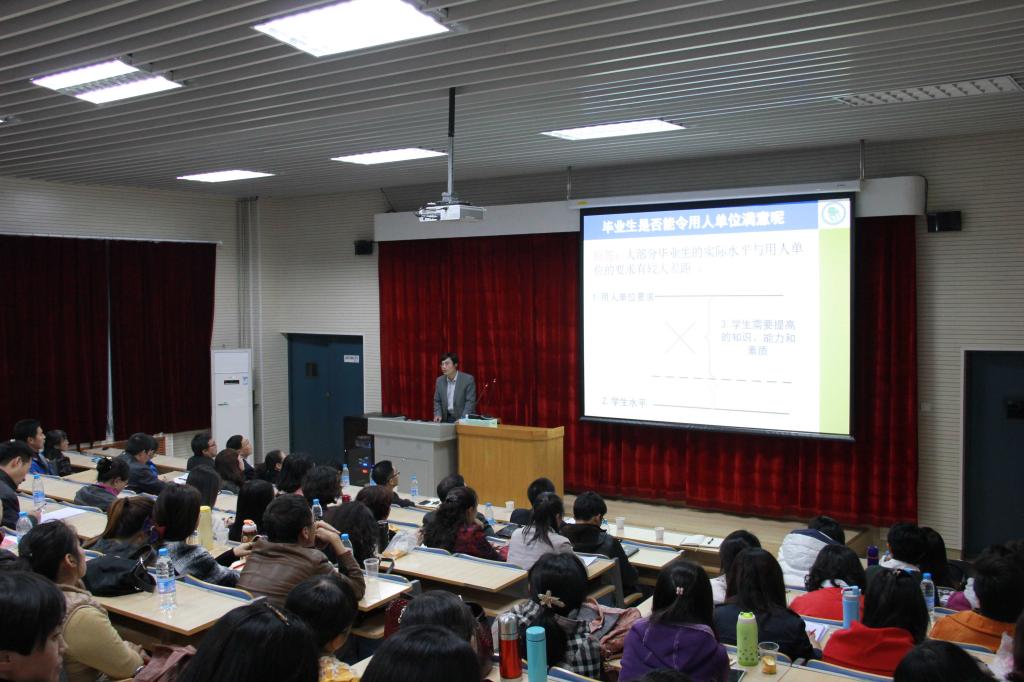 赵永生副校长以“再论能力导向人才培养模式——学生成绩评定与学生评教”为题做了报告。他指出,高等教育最重要的职责是培养高素质人才,应致力于培养人、塑造人、完善人,让人得到全面发展,致力于培养学生的爱国精神和民族精神、人文精神和科学精神。高校应着力培养学生的表达能力、批判性思维能力、道德推理能力、公民意识、适应多元文化的素养、全球化素养、广泛的兴趣,以及为就业做好专业知识和职业技能等方面的准备。他强调,实施“以能力为导向”的人才培养模式是实现上述高等教育各项目标的关键,因此,应顺应时代发展之需,构建以学生为主体、教师为主导集理论教学、项目实施、实践教学有机融合的一体化培养模式和课程体系。与此相适应,在教学过程中对以知识传授为主的传统教学模式和“一卷定分”的旧的考核方式进行彻底改革是大势所趋。
