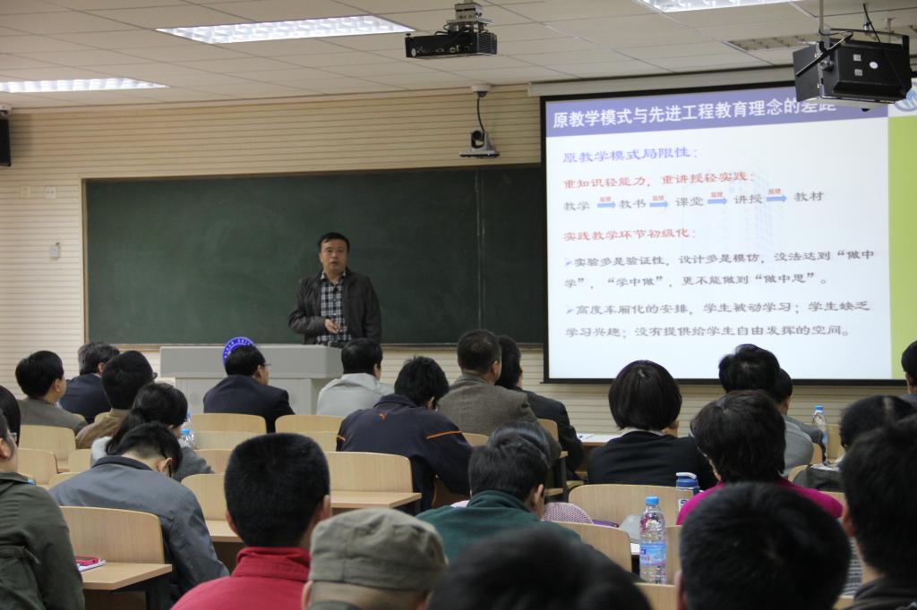 刘叶涛副处长结合一线教学及教学管理工作体会,从逻辑学的角度论证了教学改革不可能一蹴而就,广大教师应理性和自觉地认识教改、投身教改。史艳国老师、姜万录老师分别介绍了所在专业基于CDIO理念的“项目式教学”改革,主要包括专业项目式教学体系的构建、课程群的建设等;文法学院丛鑫老师介绍了中文专业“525读说写工程”特色教学活动,以及各自实施教学改革的思考与感悟。