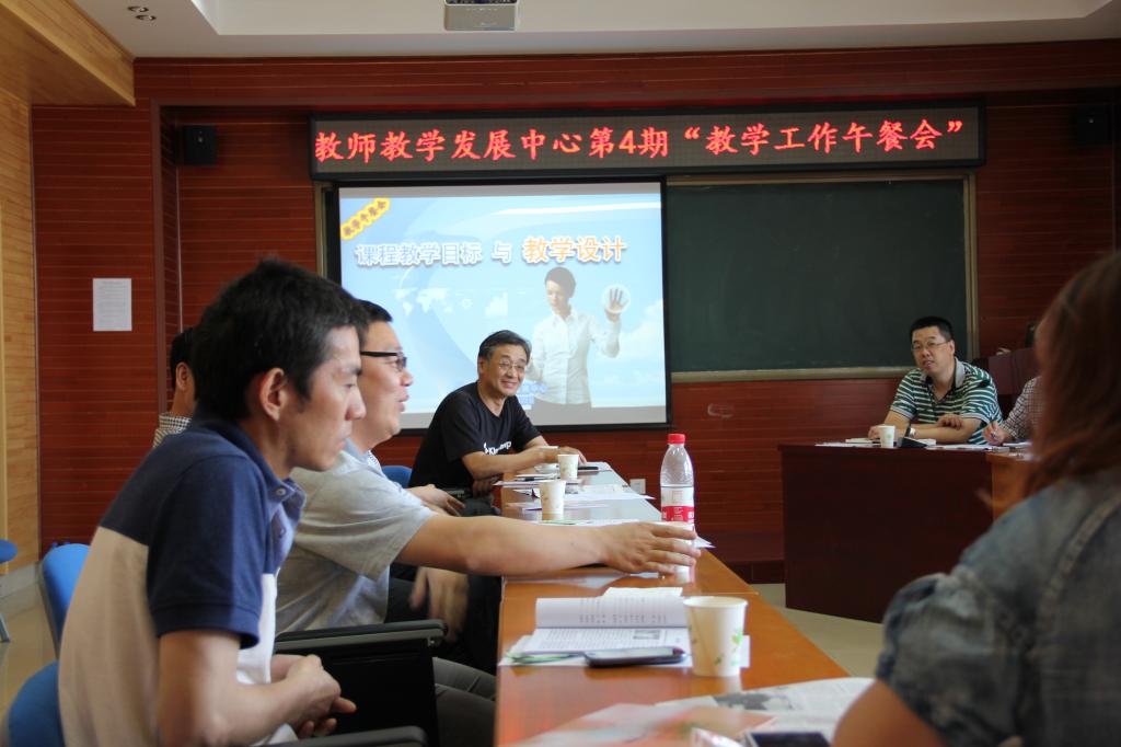 2014年6月23日,教务处教师教学发展中心在世纪楼504室举办了我校第4期“教学工作午餐会”(以下简称午餐会),本期午餐会主题为“课程教学目标与教学设计”, 来自9个学院的15位系主任和副主任及教务处相关人员参加会议。午餐会由机械学院姜万录教授主持,教师教学发展中心顾问徐玉民教授和河北省教学名师魏黎波教授应邀参加了午餐会。