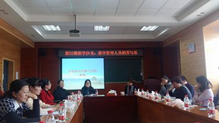 马筱聪老师结合自身多年从事教务管理工作的经验,分别从教学管理工作的重要性、做好教学管理工作的基本素养、现实问题和诉求等四个方面为大家做了详细解读,之后现场同与会人员互动交流。大家围绕日常工作中遇到的的一些共性的热点、难点问题展开了热烈的讨论。与会的各位老师在交流经验感想的过程中一致表明举办本次沙龙活动是很有意义的,并希望学校以后能为教学管理人员能力提升和职业发展提供更多的学习、培训、交流机会。